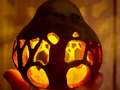 Our one-of-a-kind gourds bring warmth, beauty, and charm to any season. Each gourd is carefully hand-carved and hand-painted, transforming dried gourds into unique keepsakes — perfect as whimsical nightlights, festive Christmas ornaments, or special gifts.